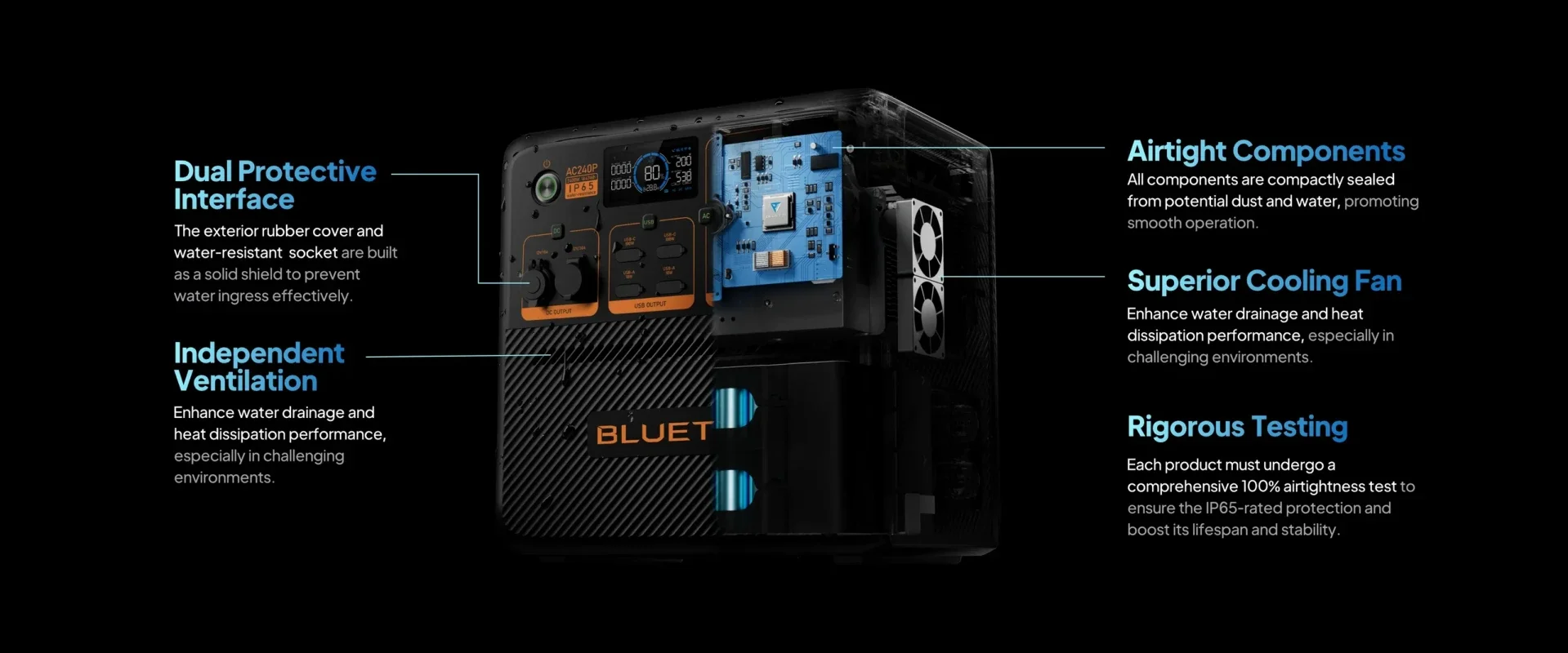 Industry-Leading Durability: Rated IP65 water- and dust-resistant, it’s ready for harsh environments — perfect for RVs, outdoor work, and emergency preparedness.