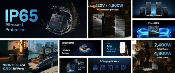 Massive Expandability: Supports up to 10,443Wh with 4 B210P batteries, or connect in parallel for a whopping 20,886Wh capacity and 4,800W / 120V output.
